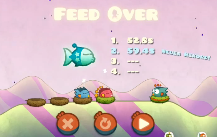 Nada de pagar por otro juego, DLC o cualquier otra cosa que implique sacar la tarjeta. Tiny Wings 2.0 era como su propio nombre indica una actualización del primer Tiny Wings y por lo tanto completamente gratuita. La alegría que me ha dado al comprobar que actualizando la aplicación aparecía un nuevo modo de juego ha sido genial. Se trata de carreras contra otros pajaritos en pequeños tramos completamente nuevos en los que deberemos obtener la mejor posición para que mama pájara nos dé el mejor alimento.